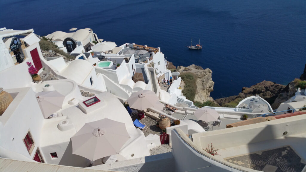 - Flug nach Santorin: der Flughafen von Santorin wird von vielen deutschen, österreichischen und schweizerischen Flughäfen angeflogen. Vom Flughafen zur Marina sind es ca. 20 Autominuten. Wenn man seine Yacht in Mykonos oder Paros gebucht hat, gibt es in der Saison täglich Fähren von Santorin dorthin.